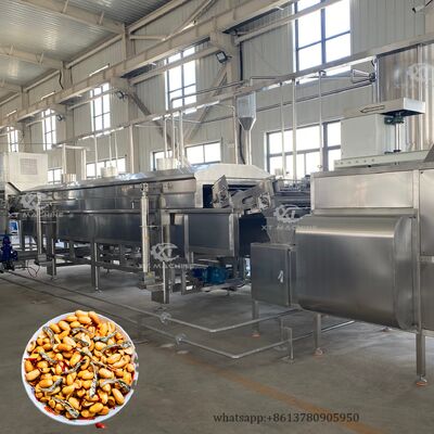 Sistema avançado de fritura contínua concebido para processar amendoins, feijões, feijões verdes e várias carnes com eficiência e precisão excepcionais.